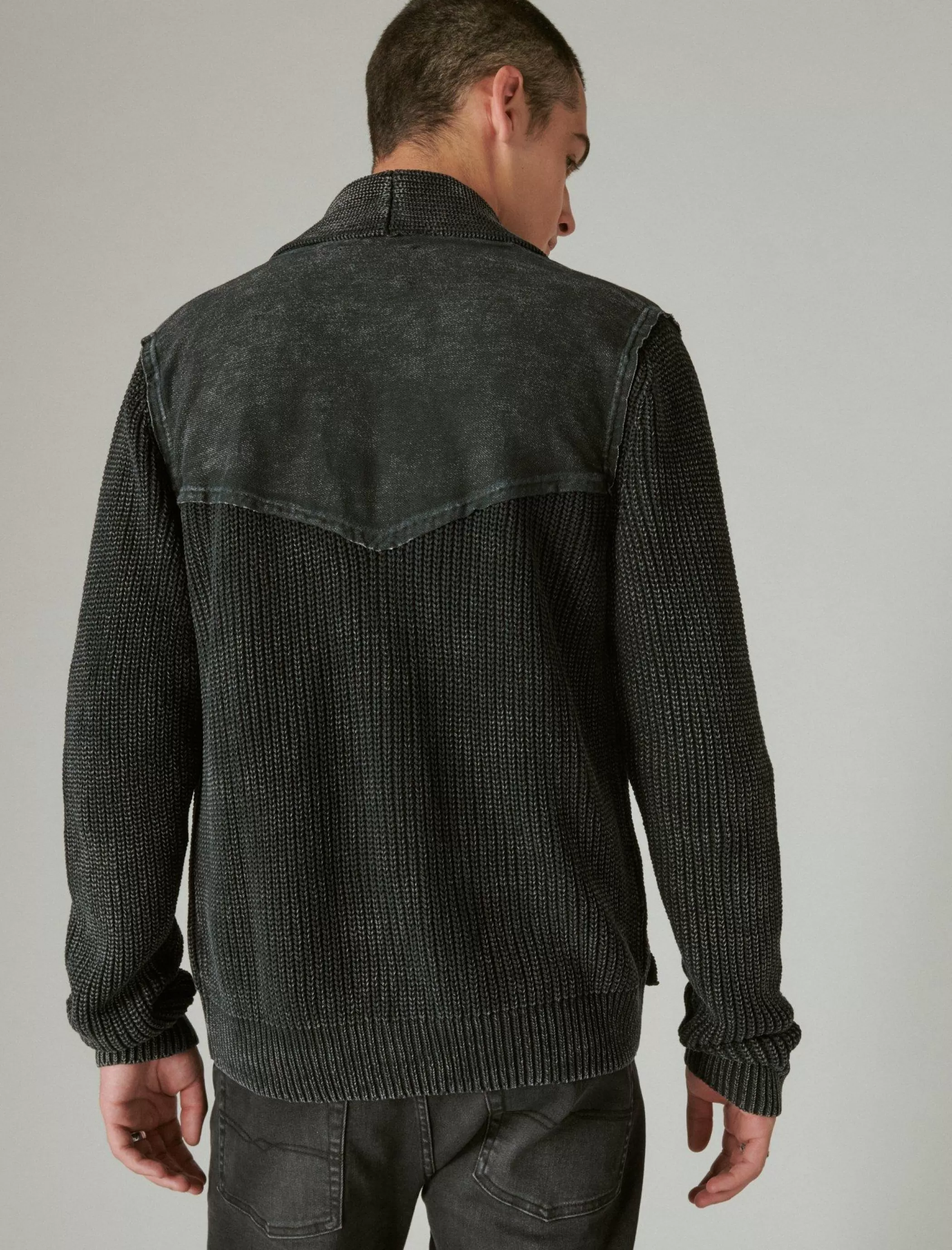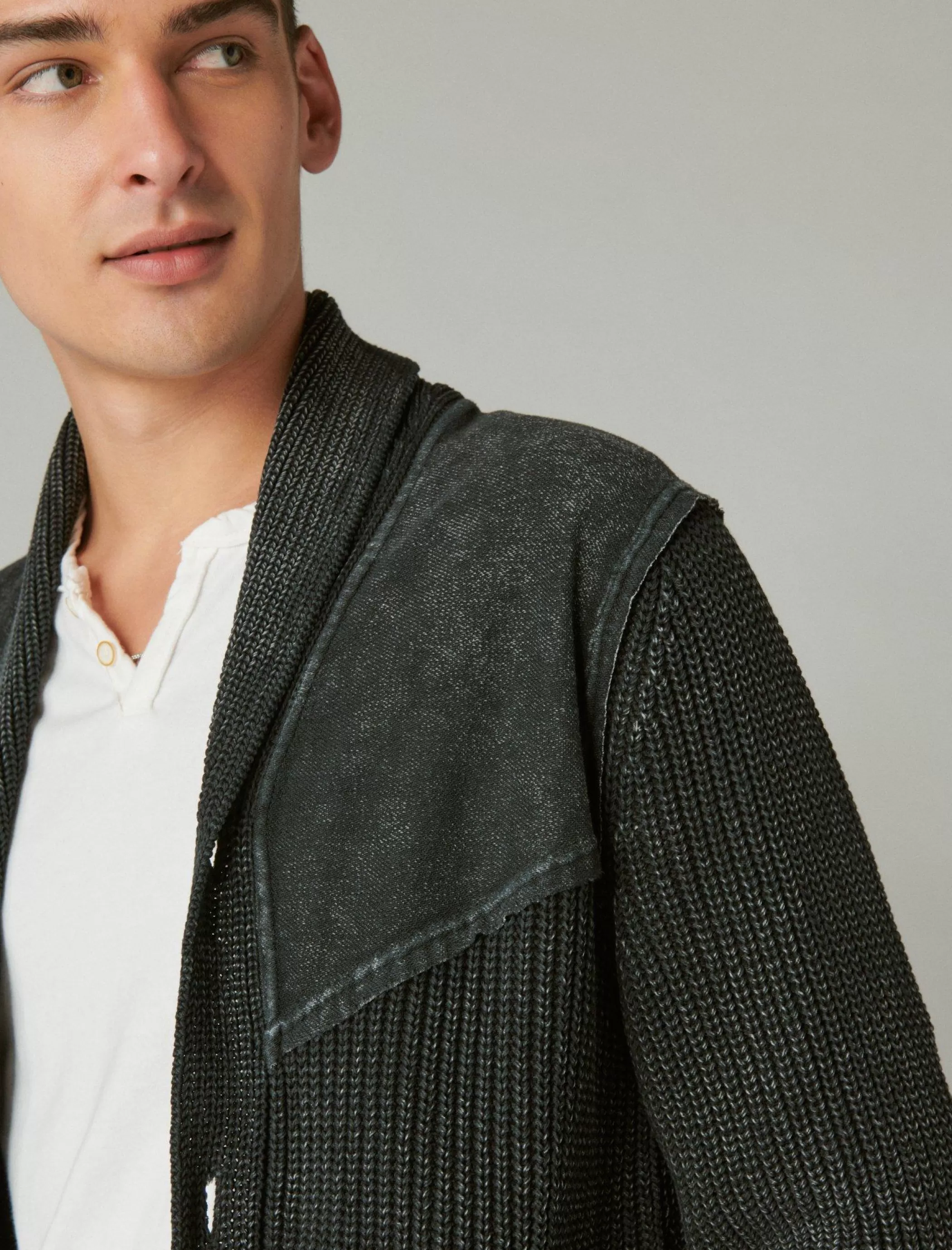 A must-have layering piece for your cool-weather wardrobe, this cardigan elevates your look with cool patchwork detailing, ribbed details and acid-washed fabric.