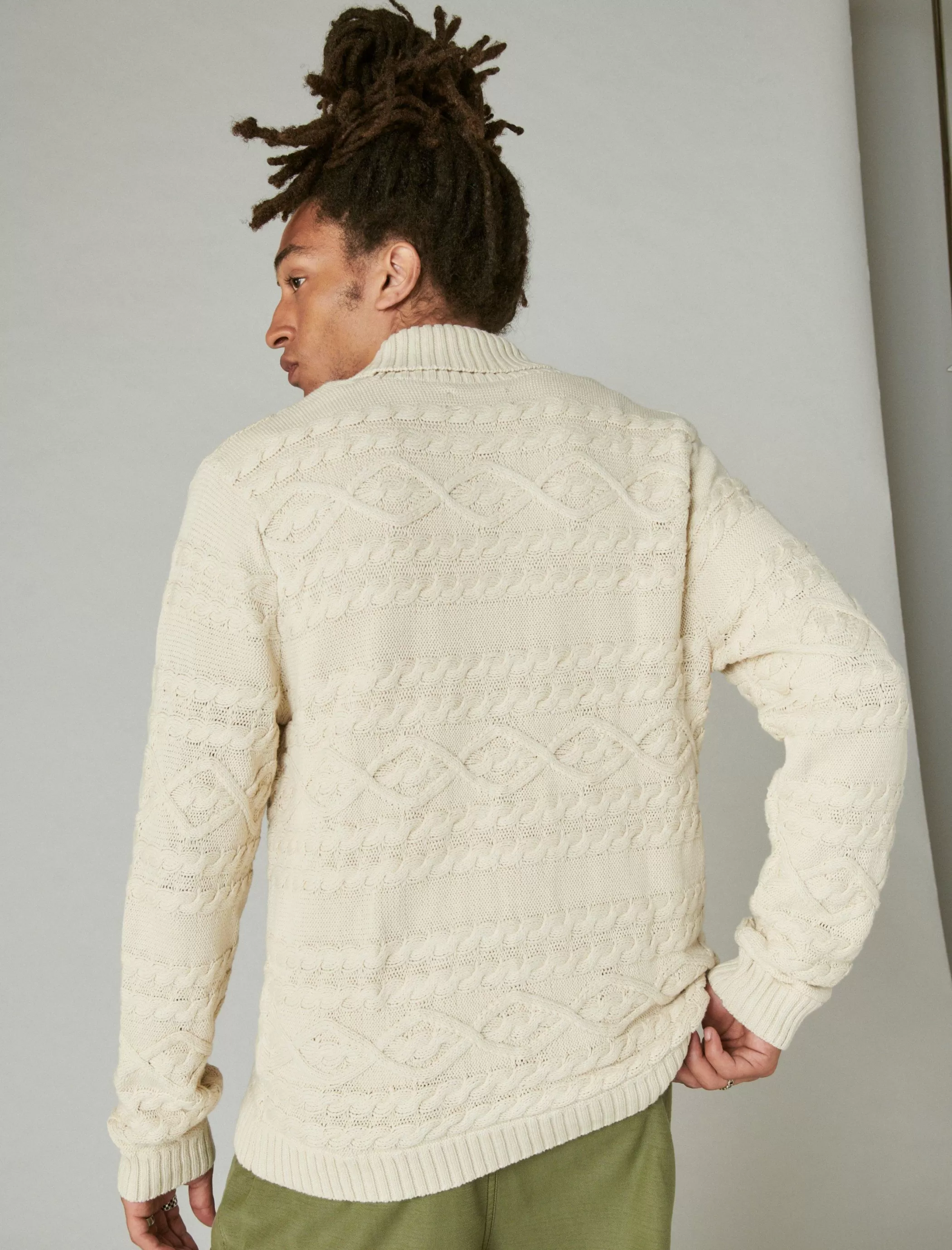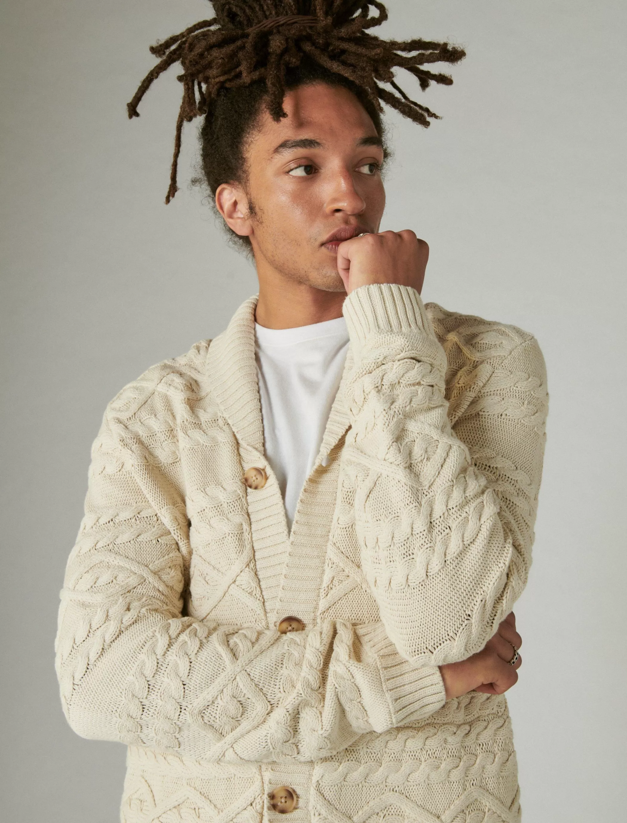 The shawl collar and chunky cable-knit design make this cardigan a must-have style for your cool-weather wardrobe.