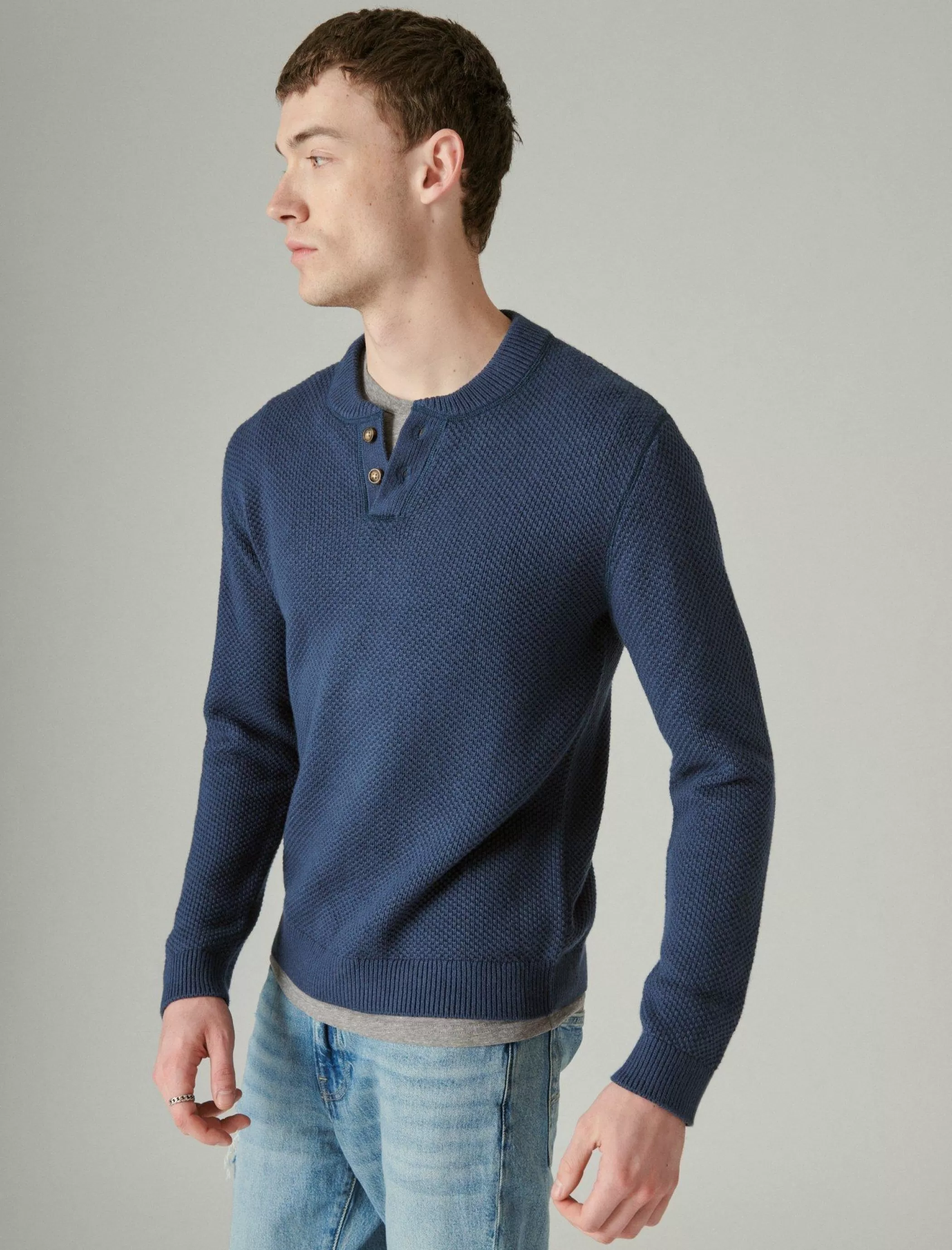 Trade in your graphic tee for this classic henley sweater. Spun from our ultra soft cloud material, it features a two-bu…