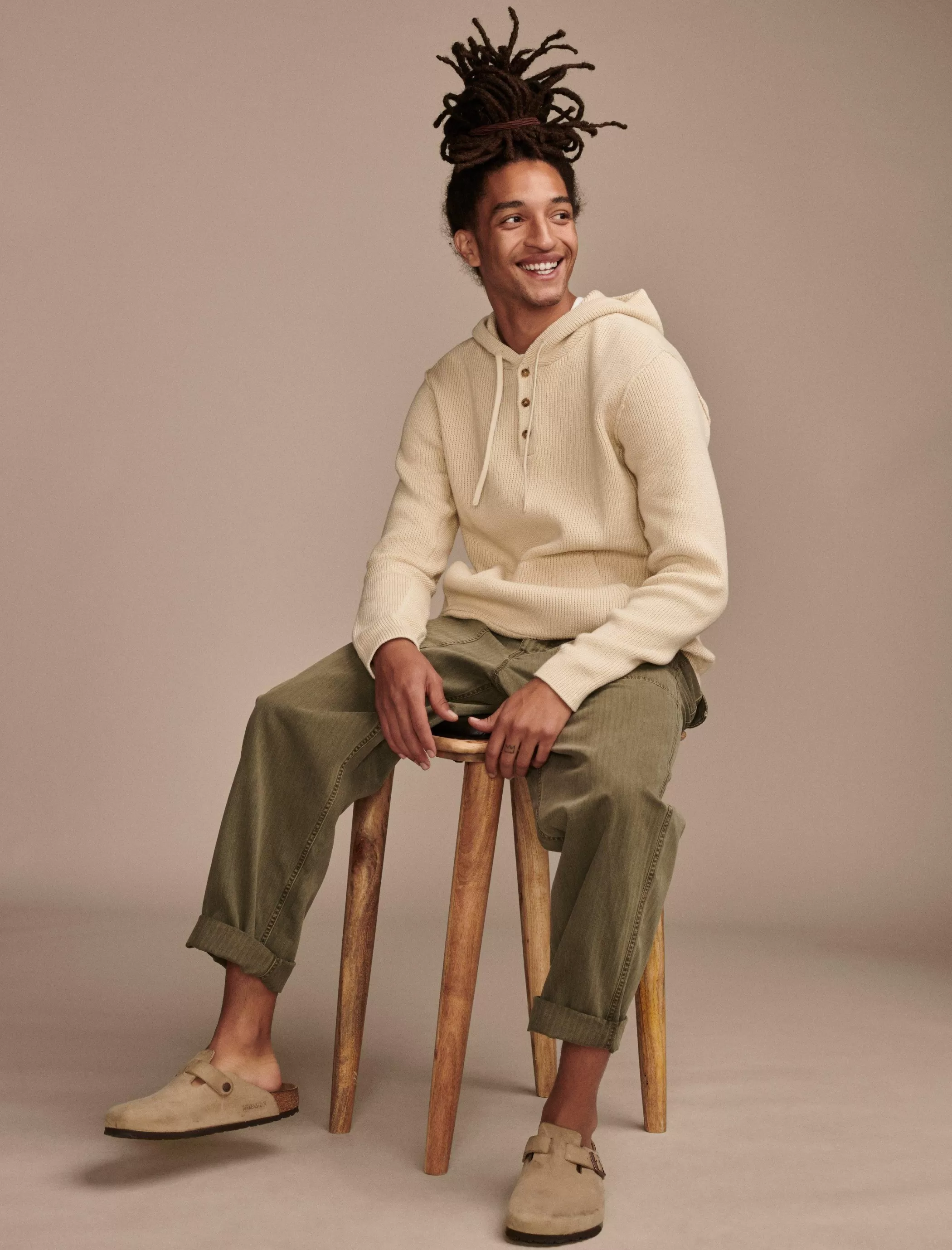 Equal parts hoodie and henley, this hoodley sweater is perfect for laid back days and beyond.