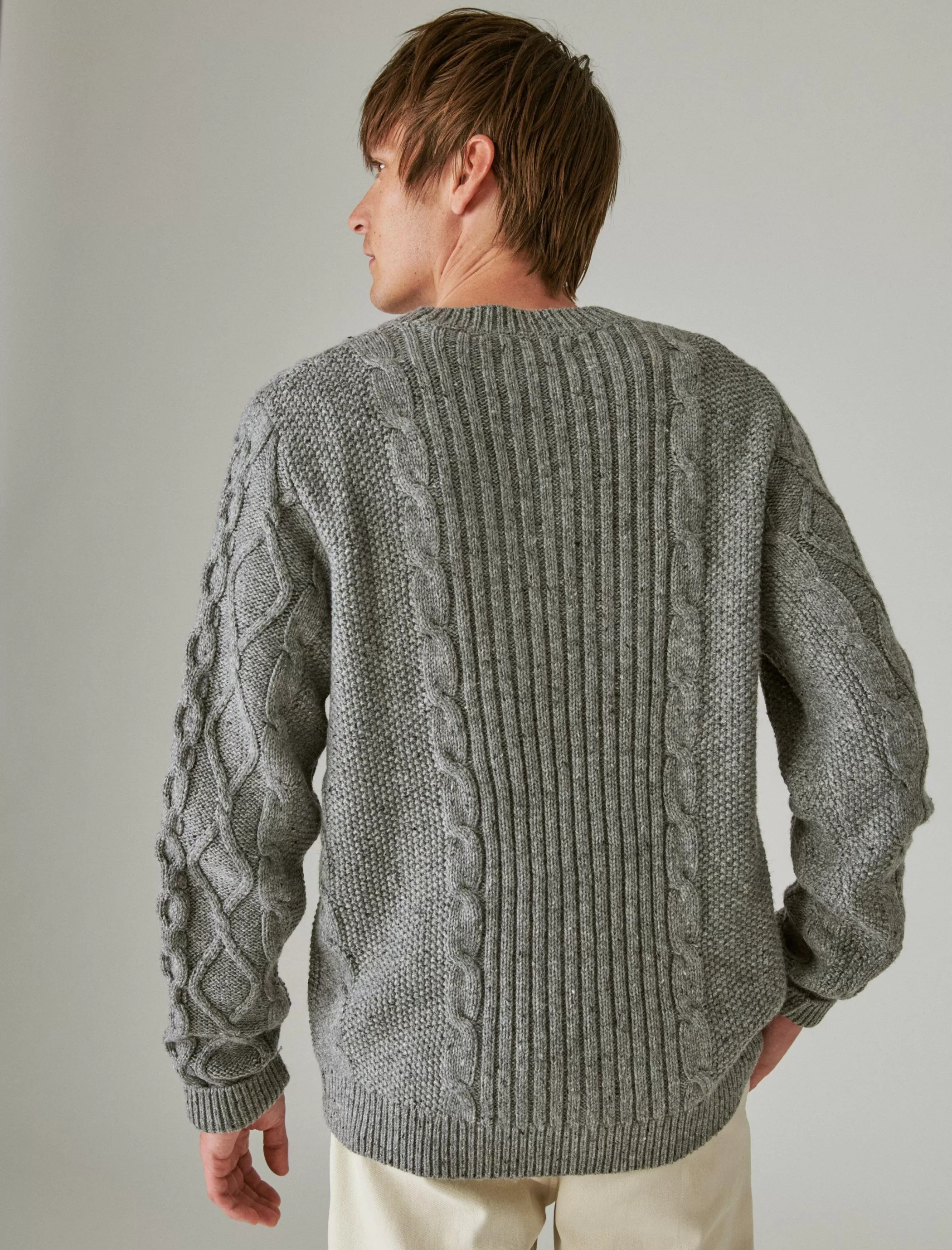 A classic for your cool-weather wardrobe, this tweed crewneck sweater has a timeless cable-knit design and ribbed detail…