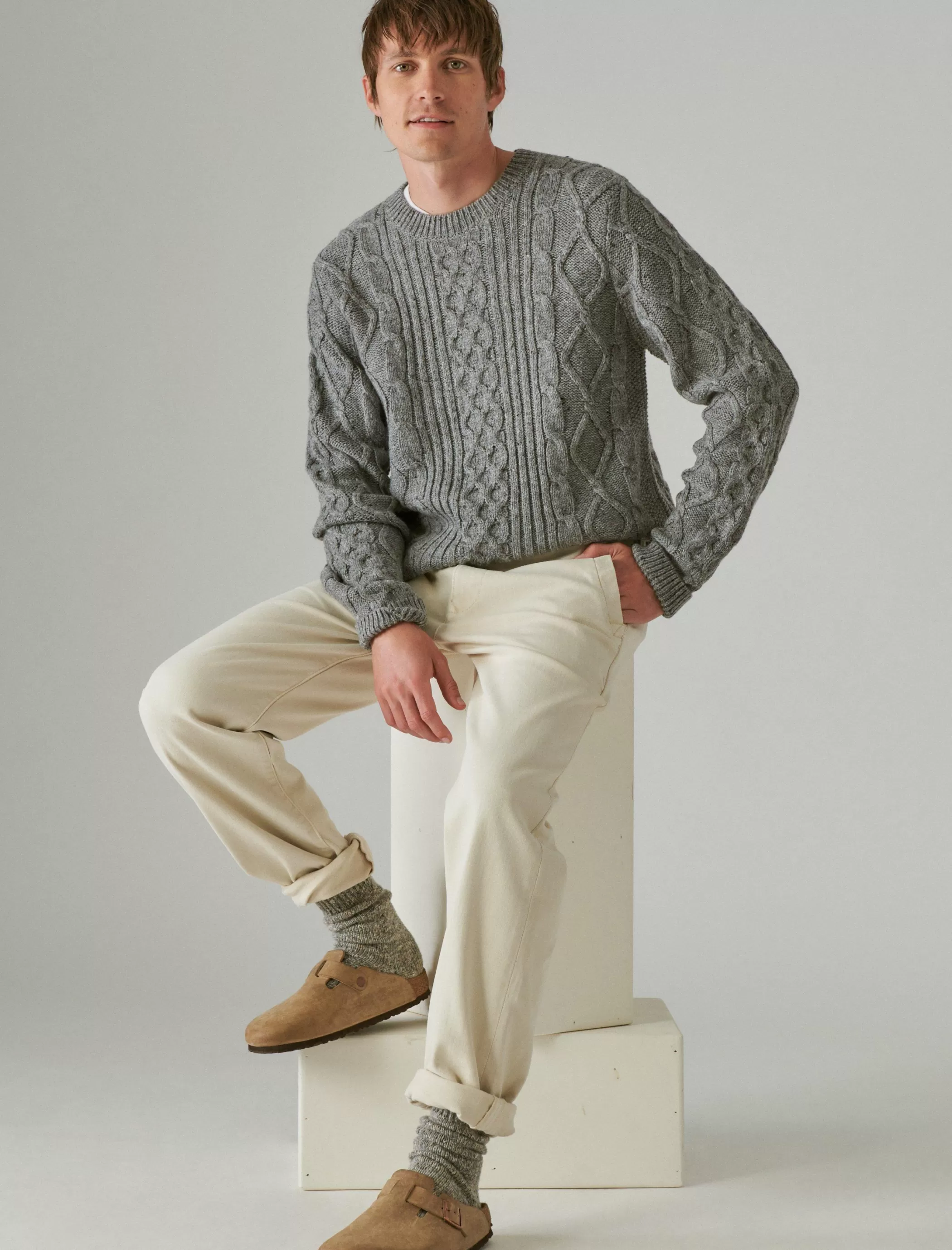 A classic for your cool-weather wardrobe, this tweed crewneck sweater has a timeless cable-knit design and ribbed details in a soft acrylic-blend fabric with a touch of wool for added warmth.