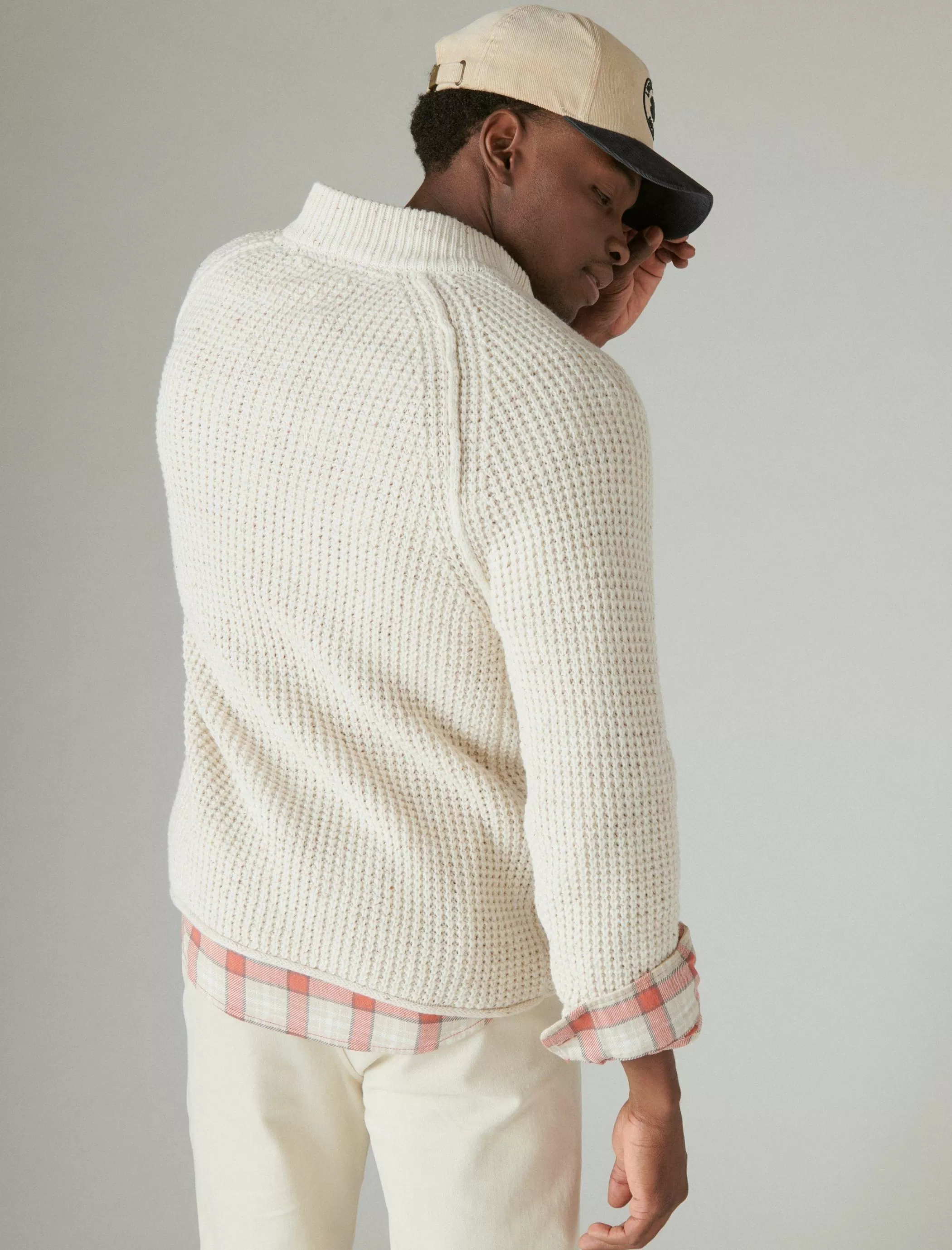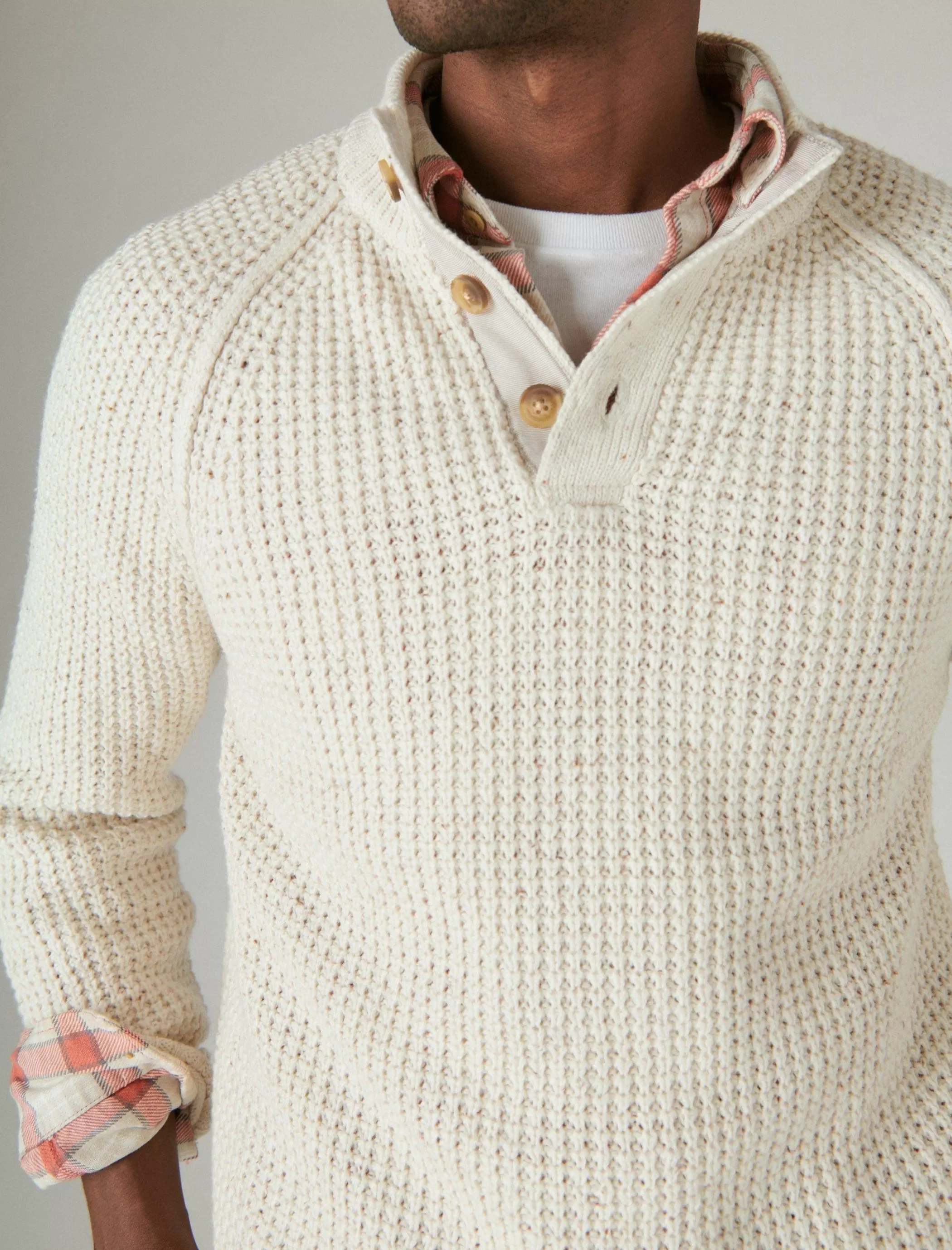 Take your look up a notch (or two) with this cozy nep sweater featuring a classic mock neck and three-button placket.